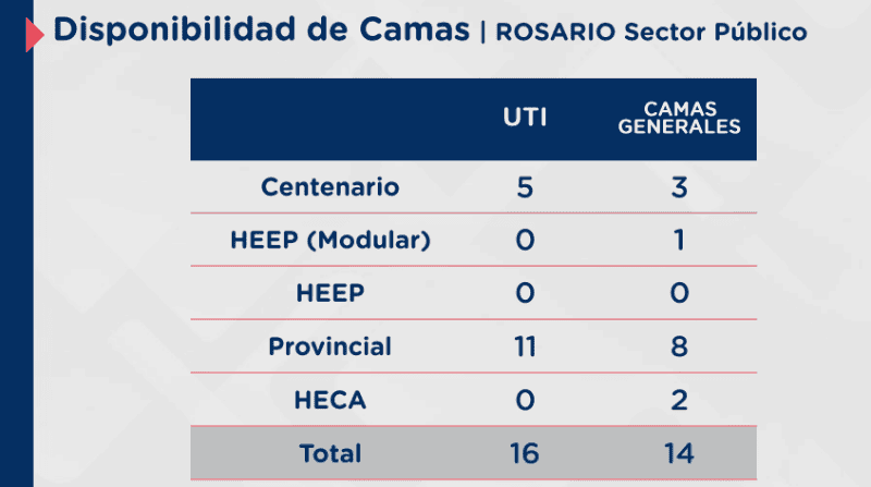 Sumados ambos sistemas, la cantidad total de camas en Rosario hasta este lunes a las 20 era: 65 de UTI y 209 generales.