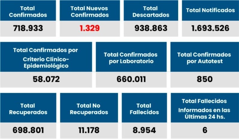 La ciudad acumula, con estos nuevos números, 247.030 contagios y 3.946 decesos desde el inicio de la pandemia, mientras que en la provincia son 718.933 y 8.954 respectivamente.