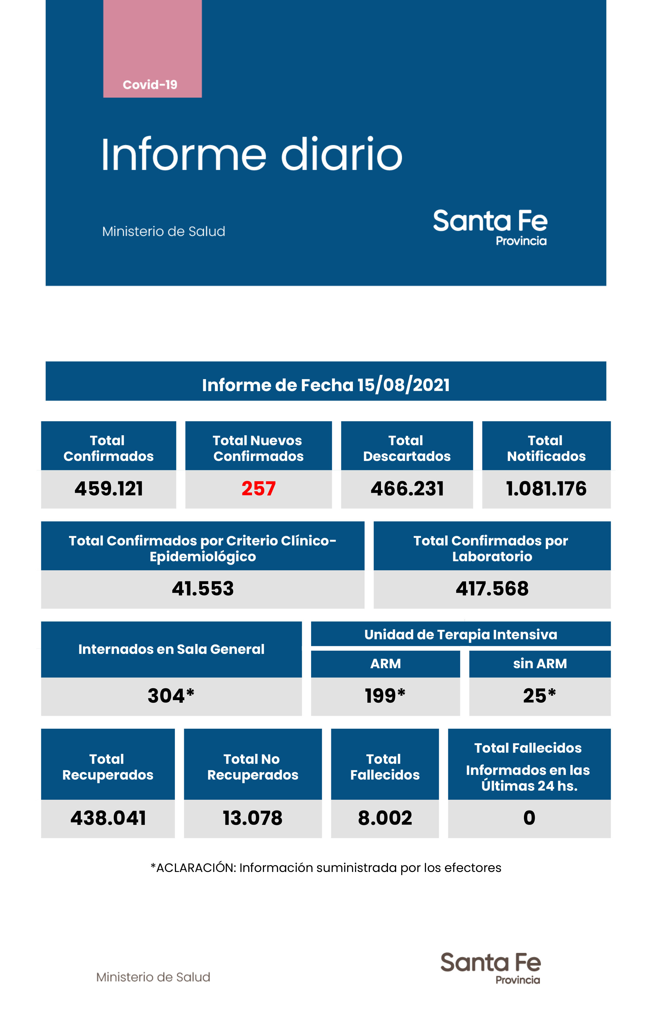 El nuevo reporte ofrecido por el Ministerio de Salud de la provincia de Santa Fe ofrece números de alivio, aunque la cifra suele decaer rotundamente los fines de semana.