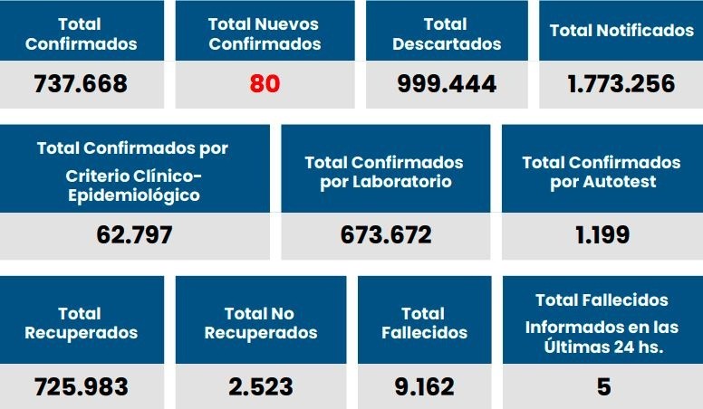 En tanto, en las últimas 24 horas, Santa Fe sólo reportó los 5 decesos rosarinos y en los últimos dos años fueron 9.162, con 737.668 contagios en total (2.523 activos).