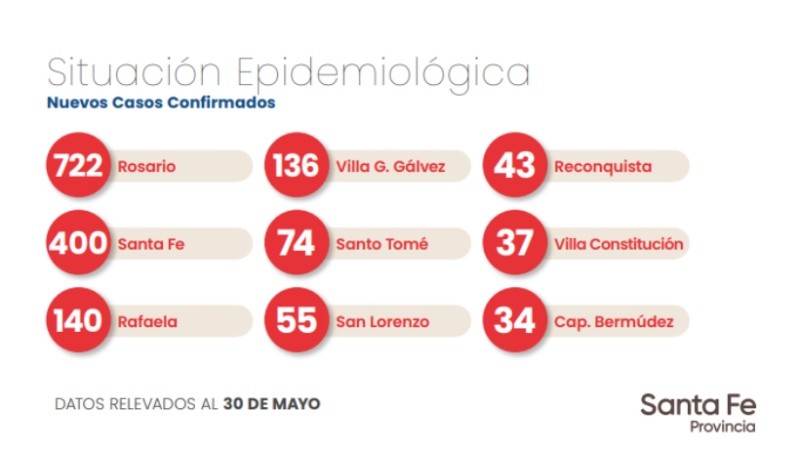 El Ministerio de Salud de la provincia informó este domingo 2.409 nuevos casos de coronavirus y 11 fallecimientos. De esos números, un deceso y 722 contagios corresponden a Rosario.