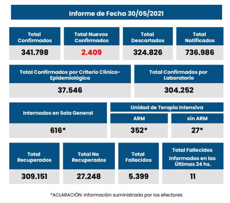 Actualmente hay 616 pacientes internados en camas generales y 379 en camas críticas, de los cuales 352 se encuentran con asistencia respiratoria mecánica.