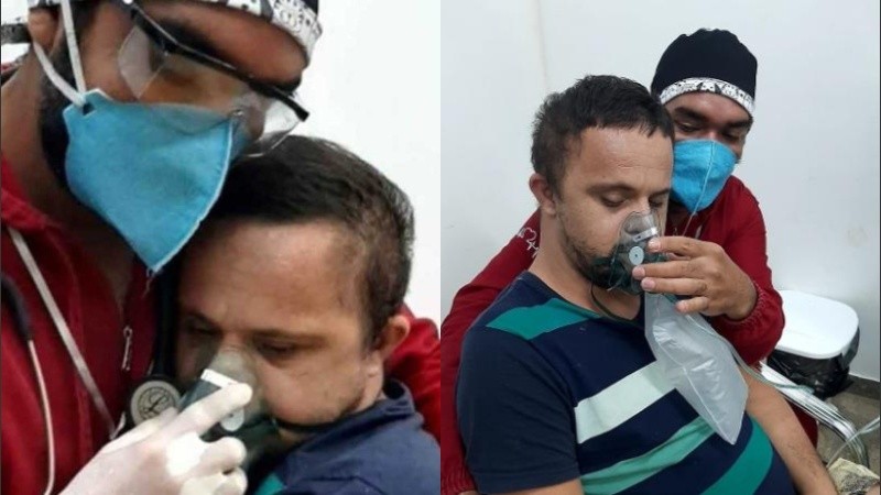 Tomó la fotografía la operadora de maquinaria Mirene Borges Da Silva, de 38 años, que también estaba siendo atendida por coronavirus. "Estaba tan debilitado, sufriendo en ese momento de agonía. Debido a la falta de aire, necesitaba el procedimiento. Pero estaba en un tubo y le dolía la nariz. Entonces, el enfermero lo abrazó y él se quedó en silencio. Pensé que la escena era tan hermosa, era un ángel que estaba en ese momento y eso provocó que se le pasara la agonía. Fue una cosa maravillosa, y la foto lo refleja”, relató al medio UOL.