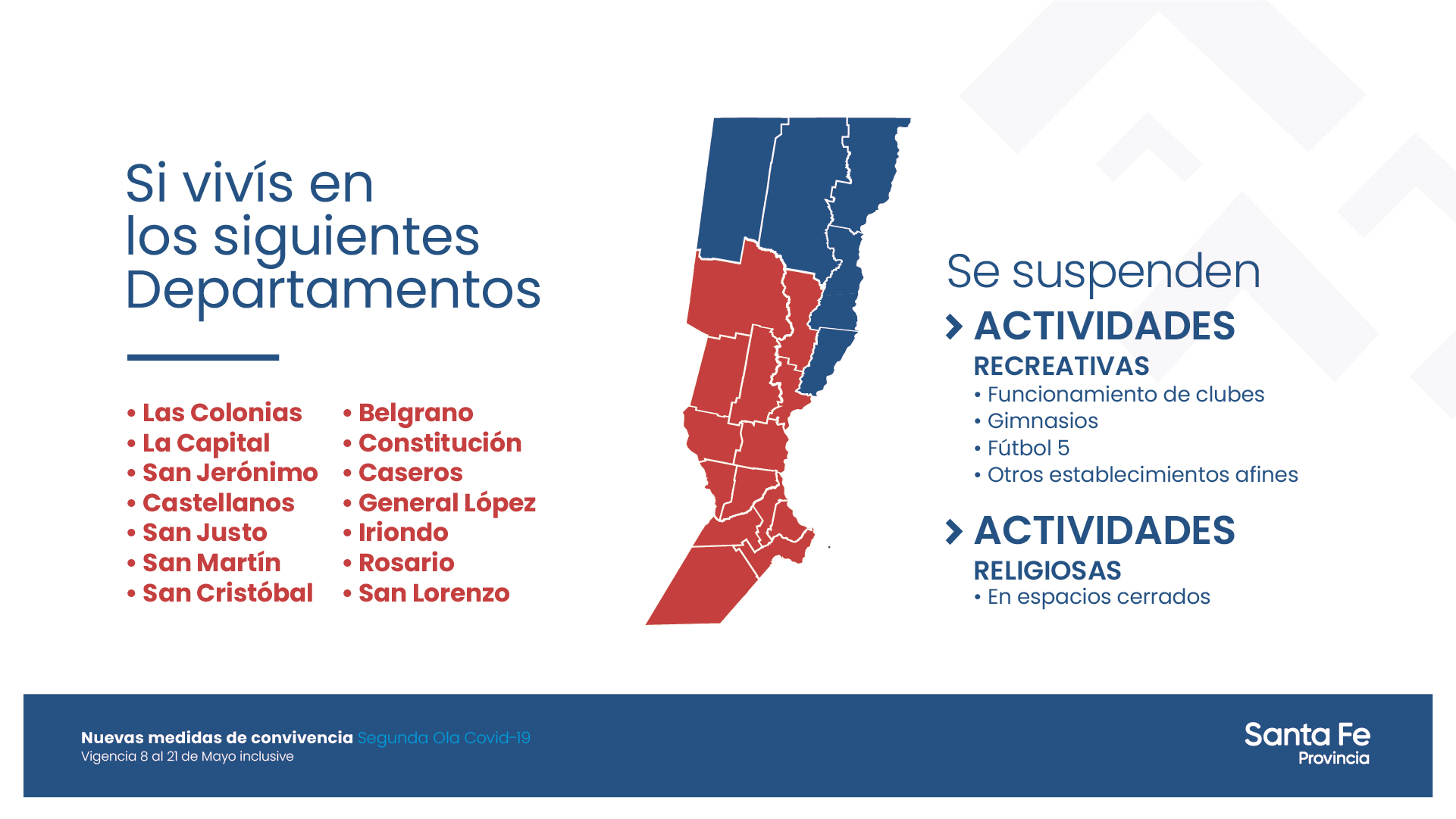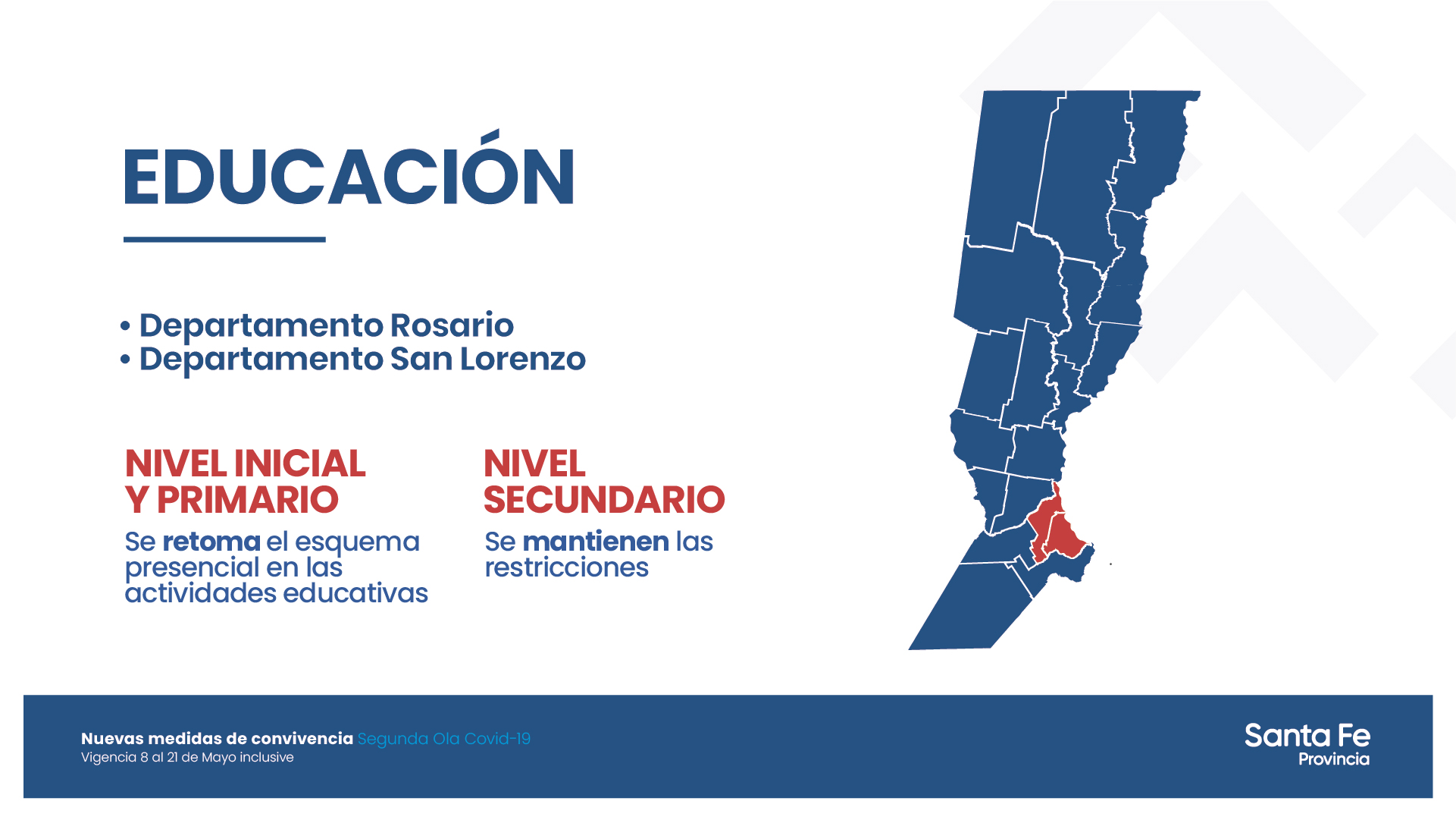 El gobernador Perotti y la ministra de Salud Martorano presentaron una serie de filminas este sábado, en las que se detalla la continuidad de las medidas, con cambio sustancial en las clases presenciales para Rosario y San Lorenzo