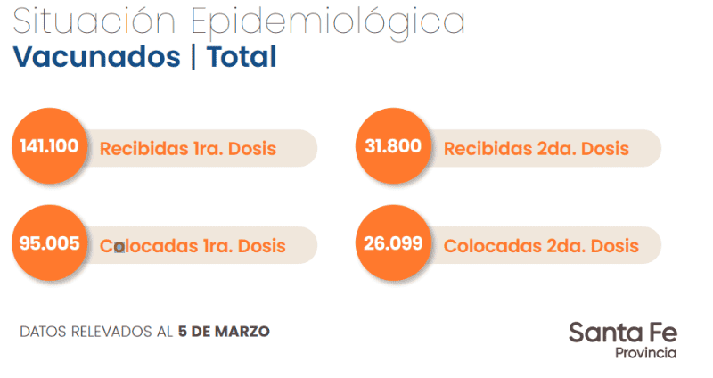 Desde el arribo en diciembre del primer avión con vacunas Sputnik V a la Argentina, a la fecha, la Nación envió a Santa Fe 172.900 dosis de distintos inoculantes. Por el momento, son tres los laboratorios que enviaron vacunas al país, el instituto Gamaleya de Rusia, el Serum Institute de la India y Sinopharm de China.