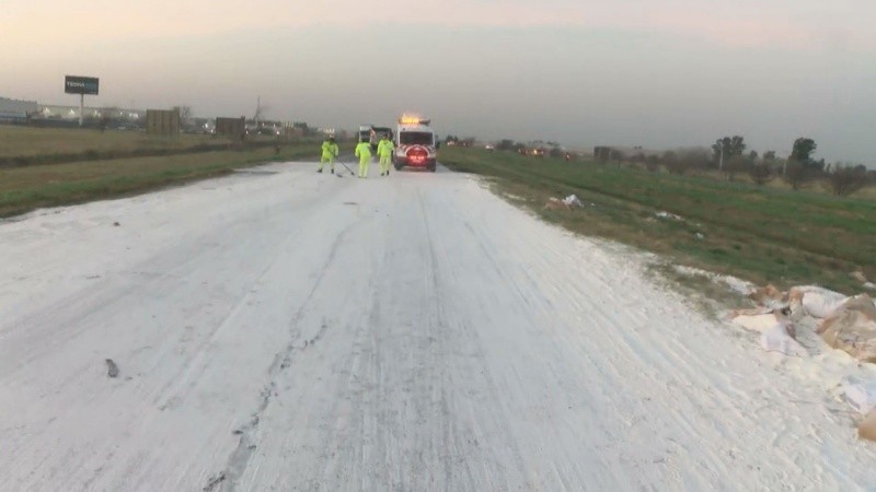 Un siniestro vial entre dos camiones en la autopista Rosario-Buenos Aires, a la altura del kilómetro 285, en Villa Gobernador Gálvez, en dirección a Rosario, provocó un corte total de tránsito en la mañana de este viernes y un caos total sobre la calzada, ya que uno de los transportes llevaba toneladas de harina que quedaron desperdigadas sobre la traza. Minutos después, en medio de la congestión, se registró otro choque, pero mano hacia Buenos Aires entre dos vehículos, generando más demoras.