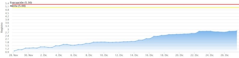 “El Instituto Nacional del Agua, en su pronóstico para finales de diciembre y primeros días de enero, indica que el nivel (Puerto Rosario) estará rondando los 3 metros y después, una tendencia bajante”, señalaron desde la fuerza federal en Radio 2.