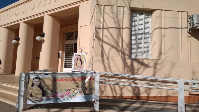 Es jueves 23 de junio. La temperatura de las primeras horas del día marcaba -2º, ya pasaron casi dos años del último invierno que sintió Julieta Del Pino. Los primeros en llegar a los Tribunales de Melincué fueron Fabiana y Adrián, sus papás. Sobre la ropa llevan pecheras blancas sublimadas con el rostro de su hija y la fecha del sábado fatal: 25/07/2020.