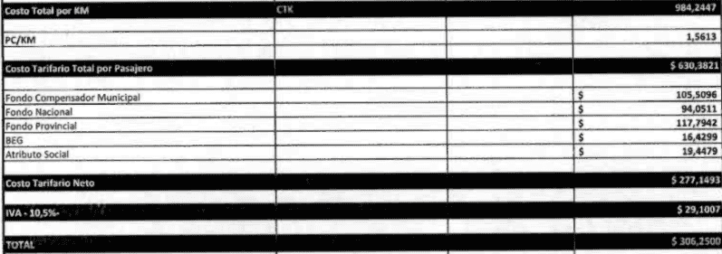 Descontando los subsidios al valor total del pasaje, el precio real del boleto en agosto se ubicaba en $306,25. A partir del mes de octubre, el municipio dispuso una actualización de la tarifa que pagan los pasajeros y llevó el valor a $185, poco más del 60% del costo del boleto.