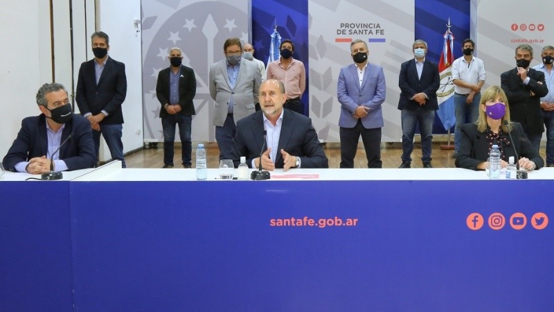 En su introducción, el gobernador señaló que la cantidad de casos se duplica cada 13 días en la provincia y cada 12 en Rosario.