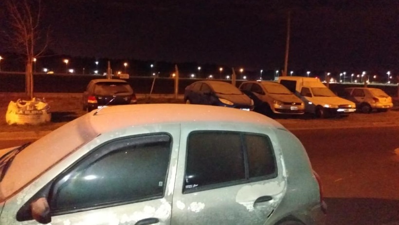Las imágenes de autos cubiertos por el hielo fueron enviadas este martes temprano a Radiópolis (Radio 2). Es que el fenómeno era contundente, tanto que algunos automovilistas debieron ayudar al arranque con algo de agua a fin de aflojar la helada.