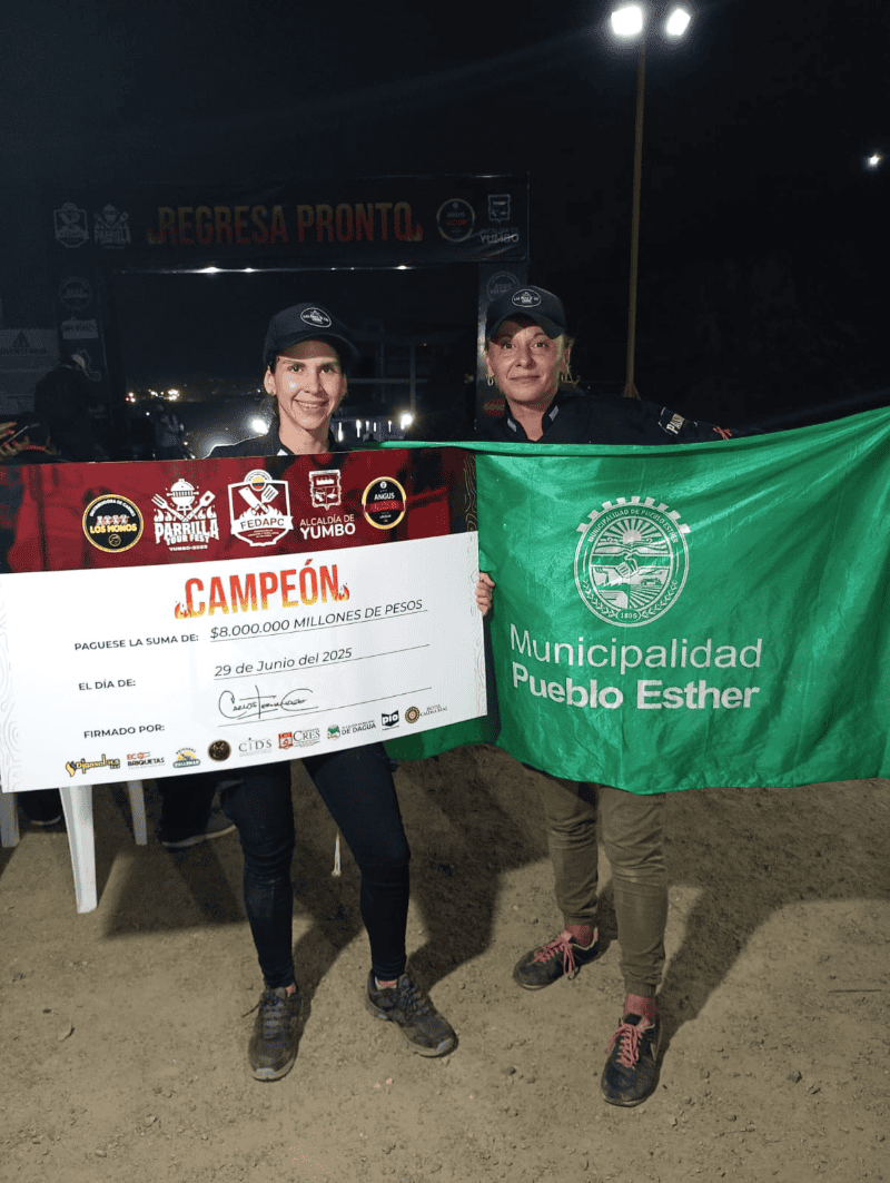 Laila y Roxana lograron salir campeonas del concurso Iberoamericano de Parrilleros y Asadores 2025 que se llevó a cabo en Colombia del 27 al 29 de junio. Las oriundas de Pueblo Esther, conocidas como "Las pibas de los choris", llevaron a la Argentina a lo más alto y lograron el campeonato. En principio había dos mujeres más en la competencia, pero a último momento se bajaron del viaje y solo participaron ellas dos junto a una caleña que se fusionó en el campeonato.