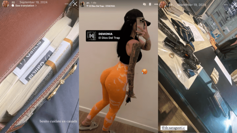 La chica de 19 años cuenta con más de 26 mil seguidores en Instagram y allí comparte fotos de su día a día. En las imágenes se la puede ver en yates, en UTV y con autos de lujo. También, subió a sus historias fotos de fiestas, dólares y hasta con armas.