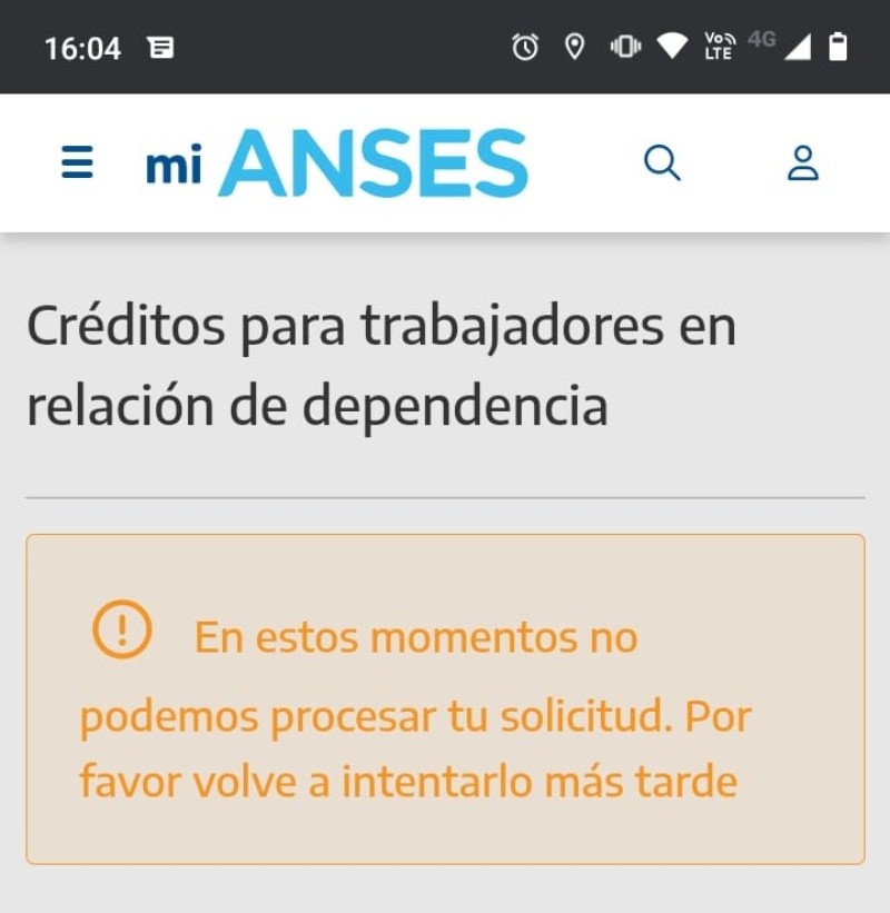 “En estos momentos no podemos procesar tu solicitud. Por favor volvé a intentarlo más tarde”, rezaba un cartel en naranja en esos casos. Probablemente se trate de inconvenientes propios de la demanda del estreno de esta segunda etapa de préstamos oficiales a baja tasa aunque resta esperar cómo responderá el sistema con el correr de las horas o los días.