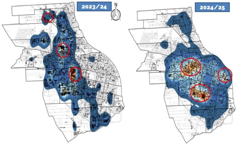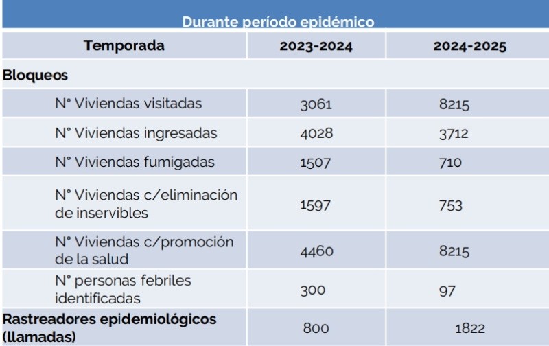 El equipo de Salud destacó el “trabajo humano”, que se hace caso por caso (cada punto en el mapa de la ciudad es un paciente identificado), y detalló que hubo 8.215 viviendas visitadas esta temporada 2024/25 (más del doble que las 3.061 de la anterior). Las estrategias de “rastreadores epidemiológicos” (o los llamadores que hacen un seguimiento de los pacientes) pasaron de 800 a 1.822.