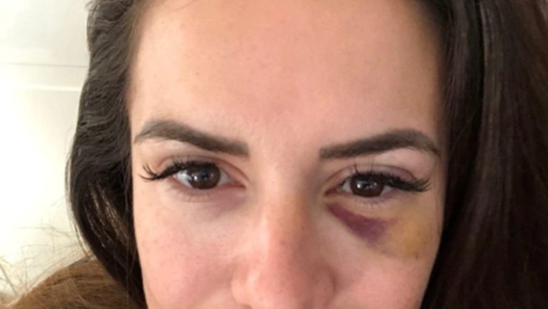 En un video que subió a sus redes sociales, De Las Heras relató: "Acá, cómo me dejó la cara, cómo me dejó. Cómo me arrastró por el piso, por el cuarto. Acá está el buenito. ¿Por qué no filmás esto ya que tanto te gusta grabar? Cómo me arrastró por acá, se ve el agua por el piso. Mirá cómo tengo la cara, toda hinchada".