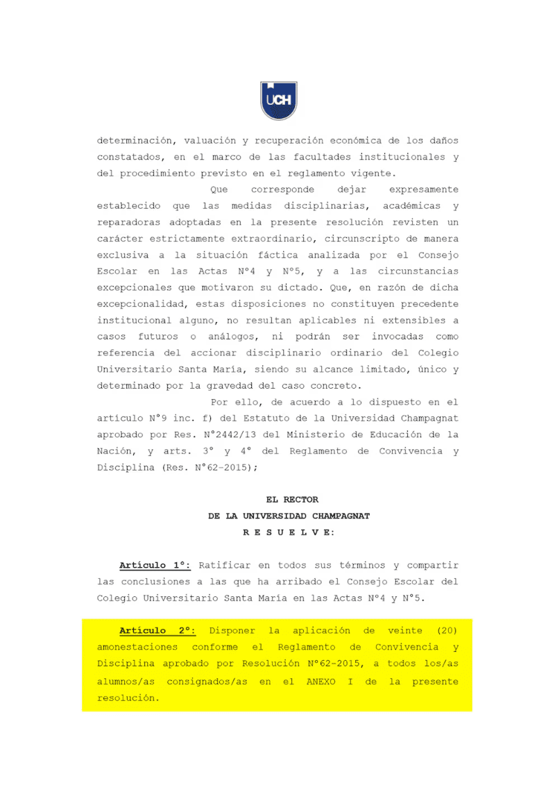 La Universidad Champagnat, responsable del colegio, sostuvo que se trata de una decisión excepcional, con la intención no solo de aplicar una sanción, sino también de generar reflexión. “La respuesta institucional suma instancias pedagógicas de reparación y aprendizaje significativo”, indicó en un comunicado.