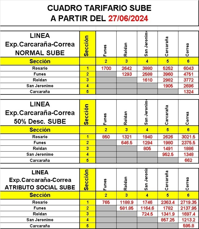 Así las cosas, el boleto desde Rosario a Funes cuesta 1.700 pesos; y a Roldán, 2.642. A Pérez, 1.677 pesos; y a San Lorenzo 3.423.