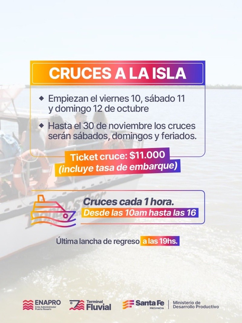 Este viernes 10 de octubre es feriado nacional y desde el Gobierno de Santa Fe definieron que sea también el día en el que vuelven los cruces a la zona de islas desde la estación Fluvial. Hasta diciembre, el servicio estará disponible los días sábado, domingo y feriados con cruces cada una hora entre las 10 y las 16.