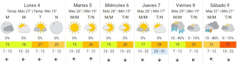 El miércoles rotará el viento al norte y el termómetro volverá a subir. Hacia fines de semana las temperaturas estarán cercanas a los 30 grados y no se descartan nuevas precipitaciones entre viernes y sábado próximos, aunque con ascenso en el termómetro.