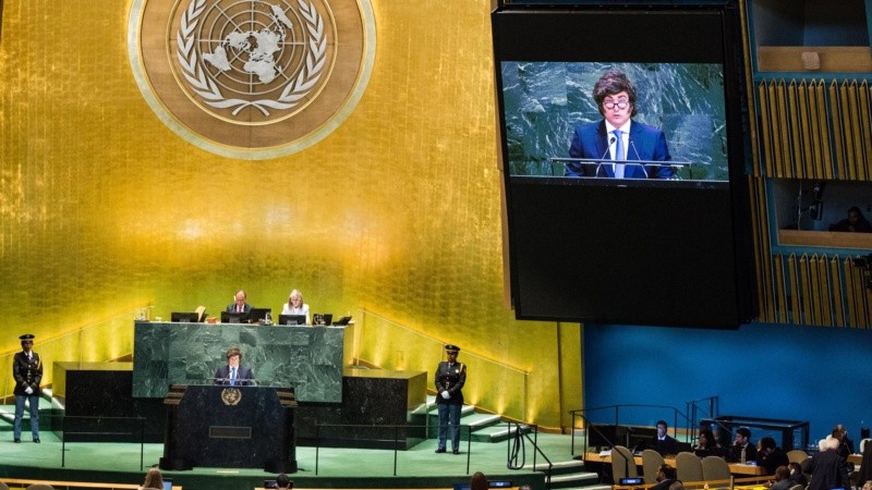 “El año pasado me paré ante ustedes, en esta misma asamblea, y sostuve que era imperativo un retorno a las ideas de la libertad. A los principios inmortales que sostienen la dignidad de la vida, la libertad y la propiedad de todos los individuos bajo la ley”, planteó ante la mirada atenta de los jefes de Estado presentes en el auditorio.