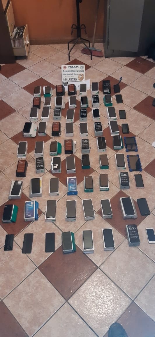 En el operativo fueron secuestrados a los acusados 70 celulares smartphone y dos tablets, municiones de diversos calibres y vestimenta policial.