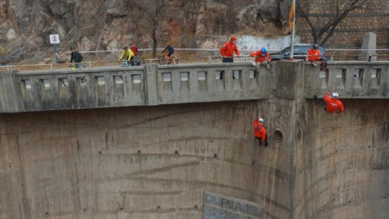 Los especialistas que descendieron en la estructura observaron una marca compatible con el impacto de un material sólido y contundente en un punto ubicado a 9 metros desde el umbral del aliviadero principal. Luego encontraron otra marca aún más fuerte en otro punto del embudo, cinco metros más abajo. De manera afortunada, los especialistas no encontraron quiebres o fisuras en la estructura que podrían ocasionar algún tipo de filtraciones.