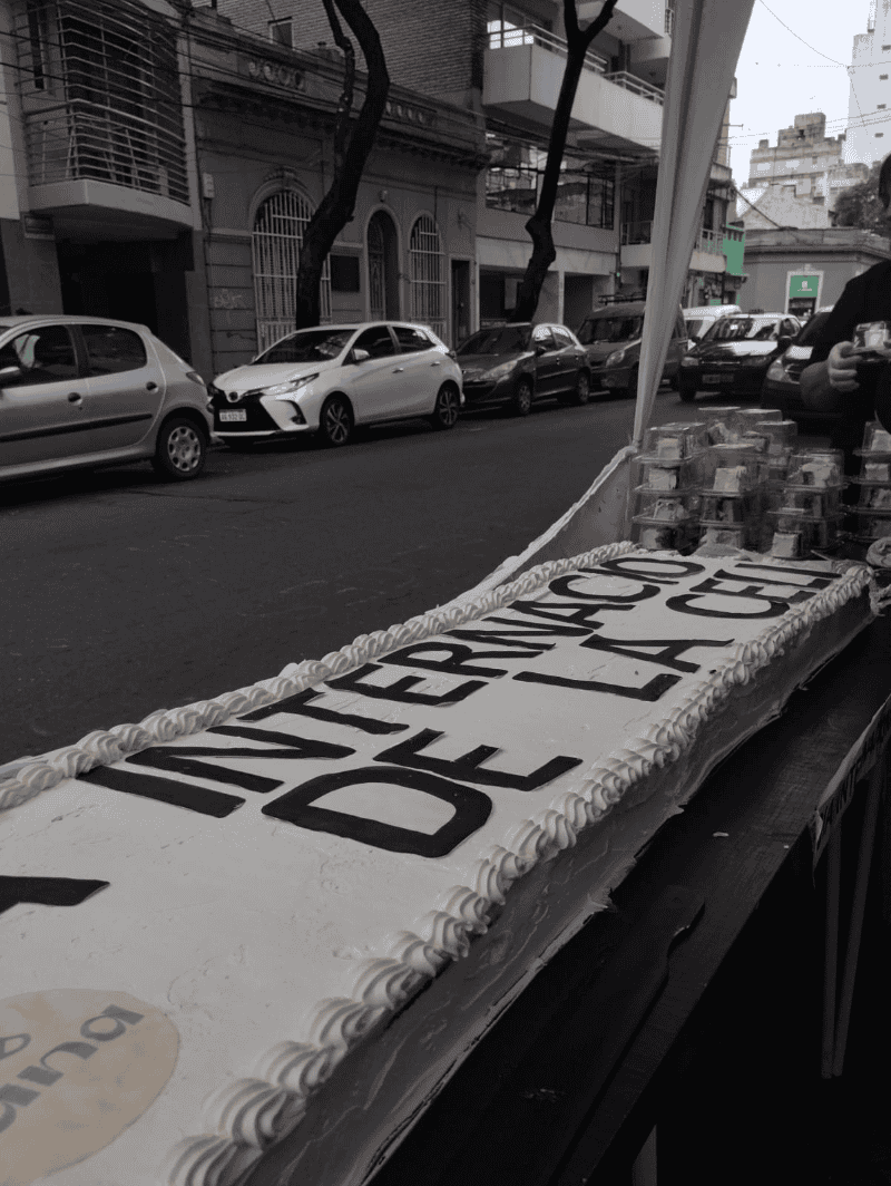 Estarán hasta las 20 en 3 de febrero al 1800 y aquellos interesados se pueden llevar la porción de torta acompañada de folletos con información sobre la celiaquía.