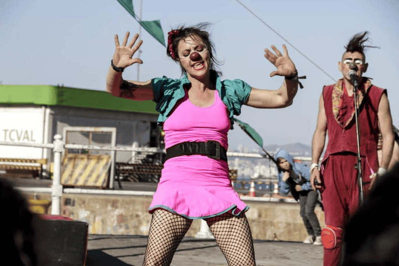 Por otro lado, la compañía Tallarín con Banana lleva más de 15 años haciendo una dupla de Clown en el lenguaje y el abordaje de la mirada del payaso y la payasa con enfoque crítico y burlesco de las distintas situaciones de la vida. Usan la alegría como medio de denuncias. Trabajan en peatonales, parques y teatros. Recorren el país pero también pasaron por Europa, Chile y Uruguay.