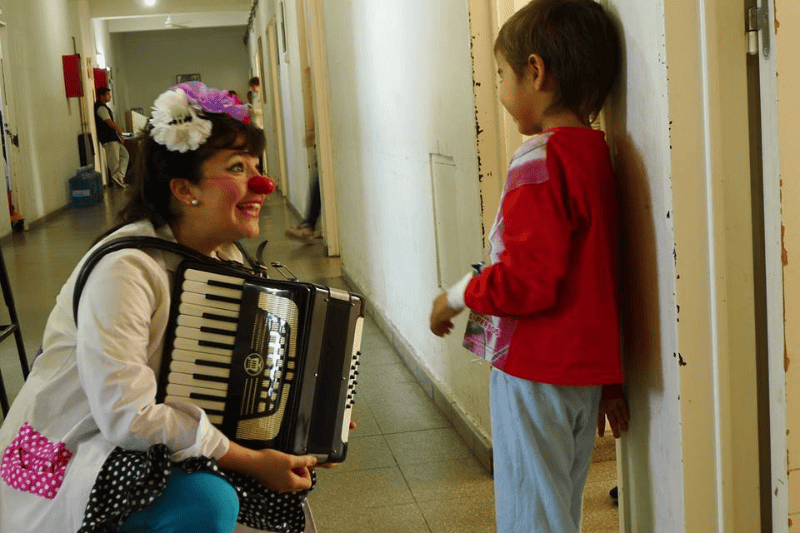 “La posibilidad de explorar la vinculación de las personas, descubrir la capacidad que tienen para reinventarse, para buscar la felicidad eso es para mí lo más lindo de la labor de ser clown de hospital”, dice Estefanía Caminotti, pionera del grupo.