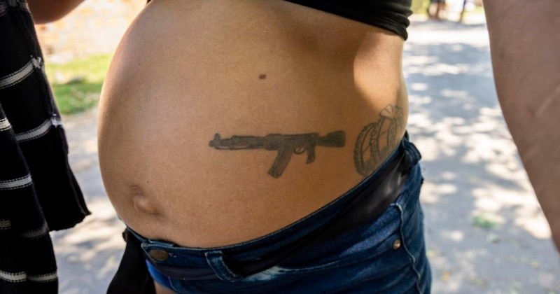 Por esa misma calle pasa caminando una pareja de la mano. Él es robusto, ella está embarazada. Van de la mano. La futura mamá tiene una ametralladora tatuada en la panza. El fotógrafo Rodrigo Abd (Agencia AP) registró el lunes, en medio del caos, ese símbolo de la violencia como cultura. La trama de la ciudad rota.