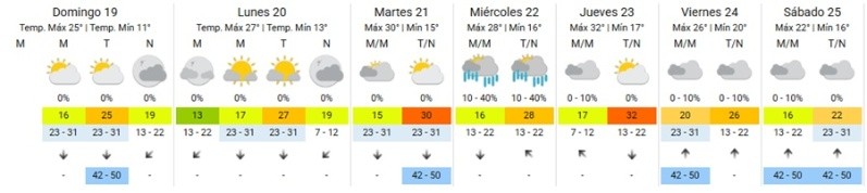 Hacia mitad de semana se espera la llegada de inestabilidad: el miércoles podrían registrarse chaparrones.
