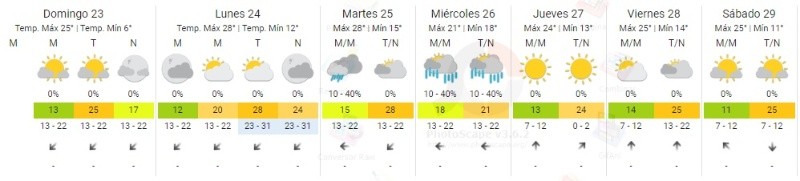 De acuerdo al pronóstico del Servicio Meteorológico Nacional (SMN), la máxima llegará a los 25 grados con cielo algo nublado y viento soplando mayormente del noreste.