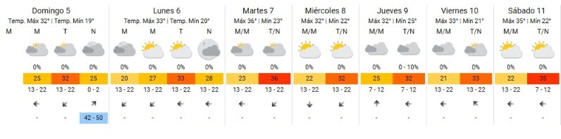 El resto de la semana seguirá calurosa por las mínimas que no bajarán de 20 grados ningún día y máximas que podrían estar cerca de los 36 grados algunos días como martes y sábado próximos.