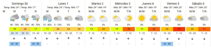 De acuerdo al reporte del tiempo, para lo que resta de la jornada se anuncian tormentas de variada intensidad, con viento del este —por momentos con ráfagas— y una máxima de 24 grados.