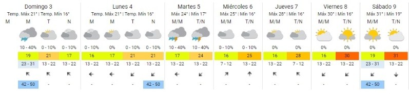 De acuerdo al Servicio Meteorológico Nacional (SMN) anuncia para lo que resta de la jornada una máxima de 21 grados con viento del sudeste.