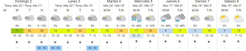 El lunes seguirá ventoso y nublado. Las temperaturas oscilarán entre 15 grados de mínima y 22 de máxima.