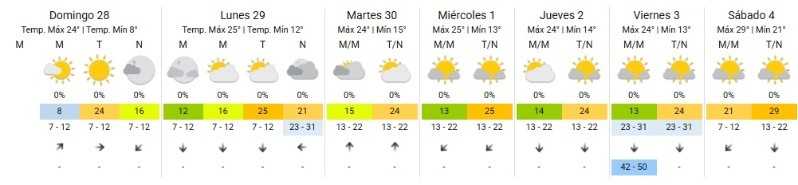 El lunes estará parcialmente nublado y la máxima no superará los 25 grados. Aunque el martes tendrá viento del sur, las temperaturas se mantendrán primaverales, con una mínima de 15 grados y una máxima de 24.
