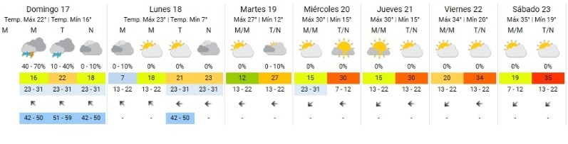A partir del martes la temperatura se recuperará e irá en ascenso gradualmente hasta llegar a otros 35 grados el sábado próximo.