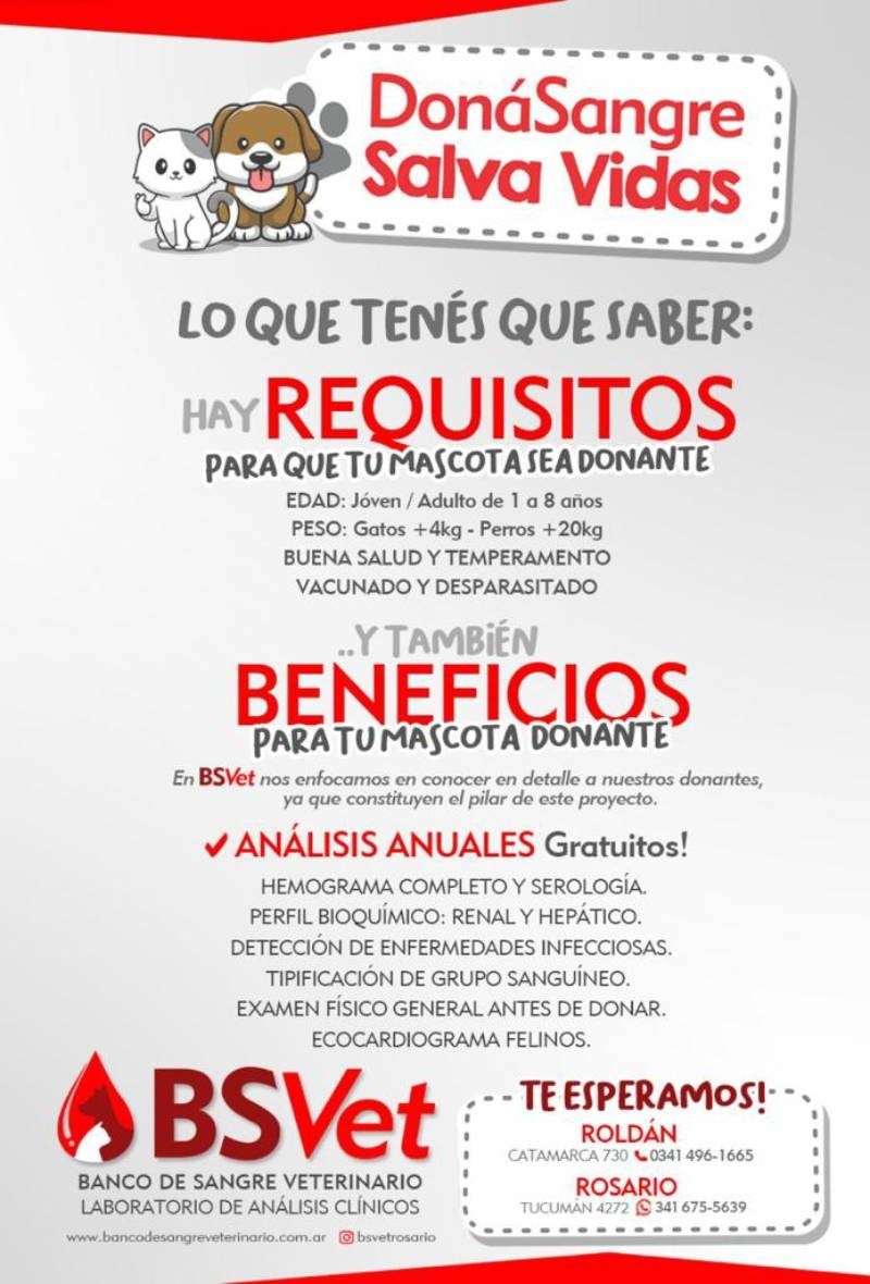 "Nuestra idea como gestión, fue poder llegar a un convenio para que aquellos animales rescatados por nuestra área, puedan de forma inmediata acceder a una transfusión. Y para poder hacerlo, además nuestro compromiso es generar mucha difusión sobre que donar sangre salva vidas". Un porcentaje de la sangre que se done para el servicio de Salud Animal, será destinada a los animales en situación de vulnerabilidad y riesgo, así facilitará los tratamientos para poder salvarles la vida. Deben ser perros y gatos entre 1 y 8 años. En perros deben pesar desde 20 kilos y en gatos desde 4 kilos, y cumplir algunos requisitos sanitarios. En primera instancia se toma una muestra de sangre para evaluar orgánicamente al donante. La muestra se procesa rápidamente y si está todo en condiciones, se procede a la donación que dura muy pocos minutos y salva muchas vidas. Con una transfusión se puede ayudar a salvar a animales que estén cursando enfermedades como por ejemplo: anemias, anemias hemolíticas, trastornos de sangrado, de plaquetas, cirugías, hemorragias, etc. "En el caso de los gatos, los más parecidos son los humanos porque tienen tres grupos sanguíneos. En los perros tienen muchos grupos pero no tienen anticuerpos regulares. La primera transfusión puede ser de cualquier donante, pero si necesitan una segunda, hay que ver la compatibilidad", explicó la médica veterinaria. "Aquellos potenciales donantes se acercan a salud animal, solicitando un turno previo, deben venir en ayuno, se les toma una muestra, se procesa rápidamente y a los días los contactamos para coordinar la donación. En esa primera consulta además se los evalúa clínicamente y se controla sus vacunas y desparasitaciones. Todo de forma gratuita", aclaró Aranza. "En el caso de que se detecte alguna enfermedad que pueda ser incompatible con la donación, ese animal se va con el diagnóstico y el tratamiento", agregó. "La comunidad tiene que saber que más donen en salud animal, más animales podremos salvar y beneficiar al banco de sangre para que también sea un recurso para todos los que lo necesiten", remarcó sobre la importancia de la difusión de este convenio. "Hoy sucede situaciones en donde una persona tiene que transfundir a su animal y tiene los recursos para hacerlo, pero de igual manera debe esperar a que surja un donante".