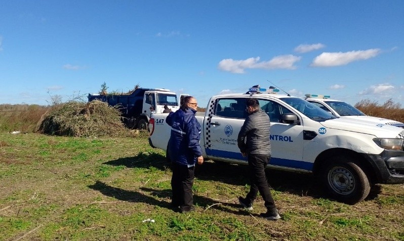 La Secretaría de Control remitió al corralón municipal dos camiones volqueteros que intentaban arrojar una gran cantidad de desechos en un descampado ubicado en la zona de Wilde y la autopista a Córdoba, a la altura del camino de continuidad de calle Cochabamba.