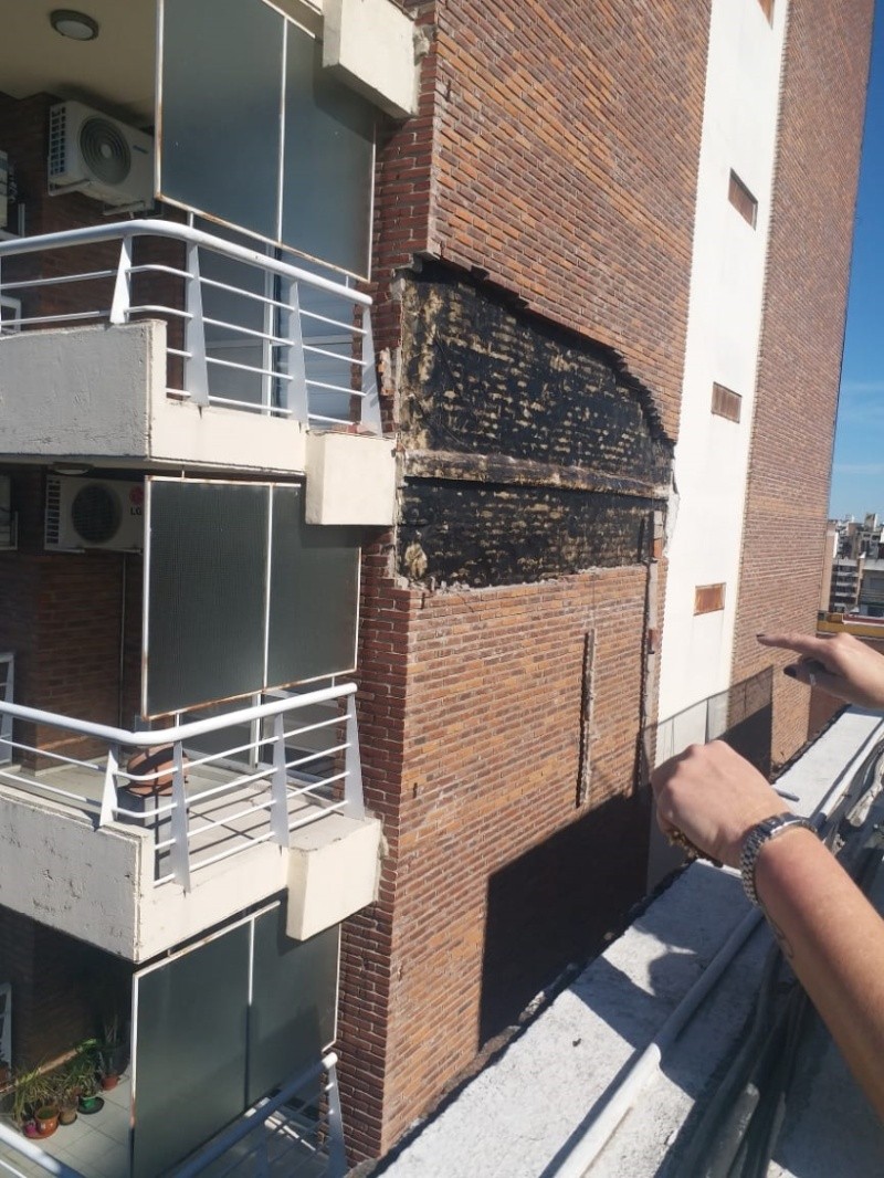 En tanto fuentes oficiales, reportaron otro derrumbe este domingo por la tarde en barrio Martin. Una vecina de Mendoza al 300 llamó al 911 por la caída de restos de mampostería del edificio lindero. Los ladrillos cayeron en el sector de la rampa de cocheras, en el patio balcón de Teresa –la vecina que dio el alerta– y en un departamento lindero.