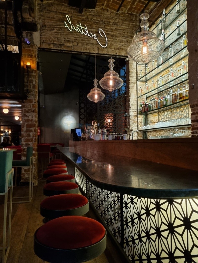 GEMA destaca por su estética premium: Tapizados en pana, chapas perforadas, barra de mármol, y mesas de piedra, con una iluminación cálida que lo vuelve uno de los ambientes mas atractivos de la ciudad.