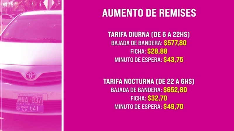 En tanto, durante la sesión se aprobó también un incremento para los servicios formales de remises, cuyo tarifario quedará conformado de la siguiente