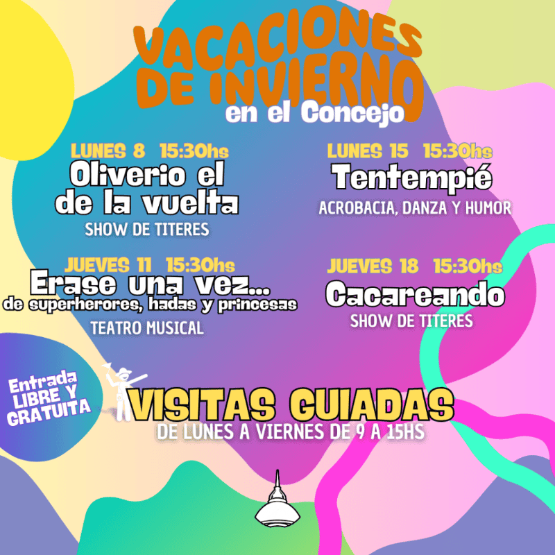 En estas vacaciones de invierno el Concejo municipal se suma por primera vez a la agenda de espectáculos y actividades infantiles que tiene la ciudad. Los lunes y jueves los interesados podrán asistir a shows de títeres, teatro, música y demás eventos, que serán con entrada libre y gratuita.