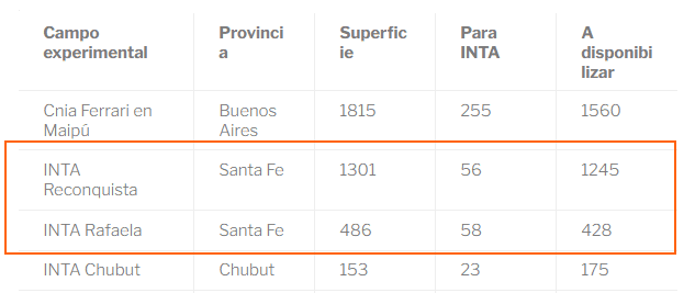 Aunque la venta de los terrenos aún no se anunció, un documento elaborado por la presidencia del Inta planifica poner “a disponibilidad” de la Administradora de Bienes del Estado (AABE) al menos 22 predios por un total de 27 mil hectáreas de tierras productivas. Ese plan ya comenzó con la venta del histórico edificio Cerviño, del Inta en Buenos Aires, primero desafectado al organismo y ahora se llamó a subasta mediante el Boletín Oficial.