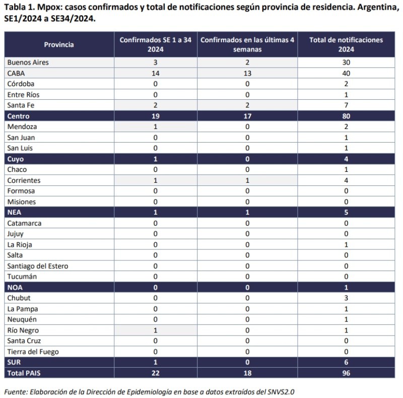 También se detalló que el rango etario de los pacientes que realizaron consultas y recibieron el diagnóstico positivo de viruela del mono va de 20 a 49 años. Entre estas personas, hubo dos que tuvieron que quedar internados en salas de cuidados generales.