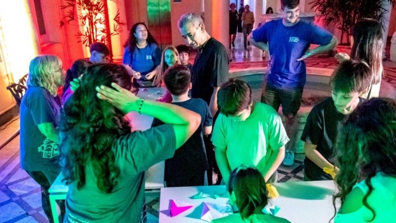 En el patio, se desarrolló la actividad de plegado de papel; y en el hall de ingreso, el Observatorio Móvil. También hubo recorridos por algunas oficinas del Palacio junto al intendente rosarino.