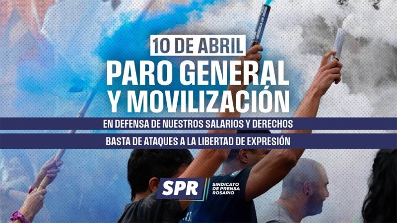 El Sindicato de Prensa Rosario (SPR) adhiere al paro nacional de este 10 de abril convocado por las tres centrales sindicales: "Frente a la crueldad y la violencia del gobierno de Milei decimos ¡basta!".
