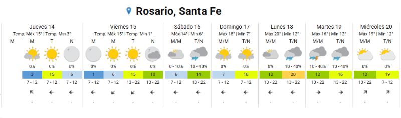 Este jueves Rosario amaneció bien fría. Las temperaturas bajas se hicieron sentir y el Servicio Meteorológico Nacional (SMN) registró una mínima de 2 y una sensación térmica de 0 grados. La temperatura máxima prevista es de 15 grados.
